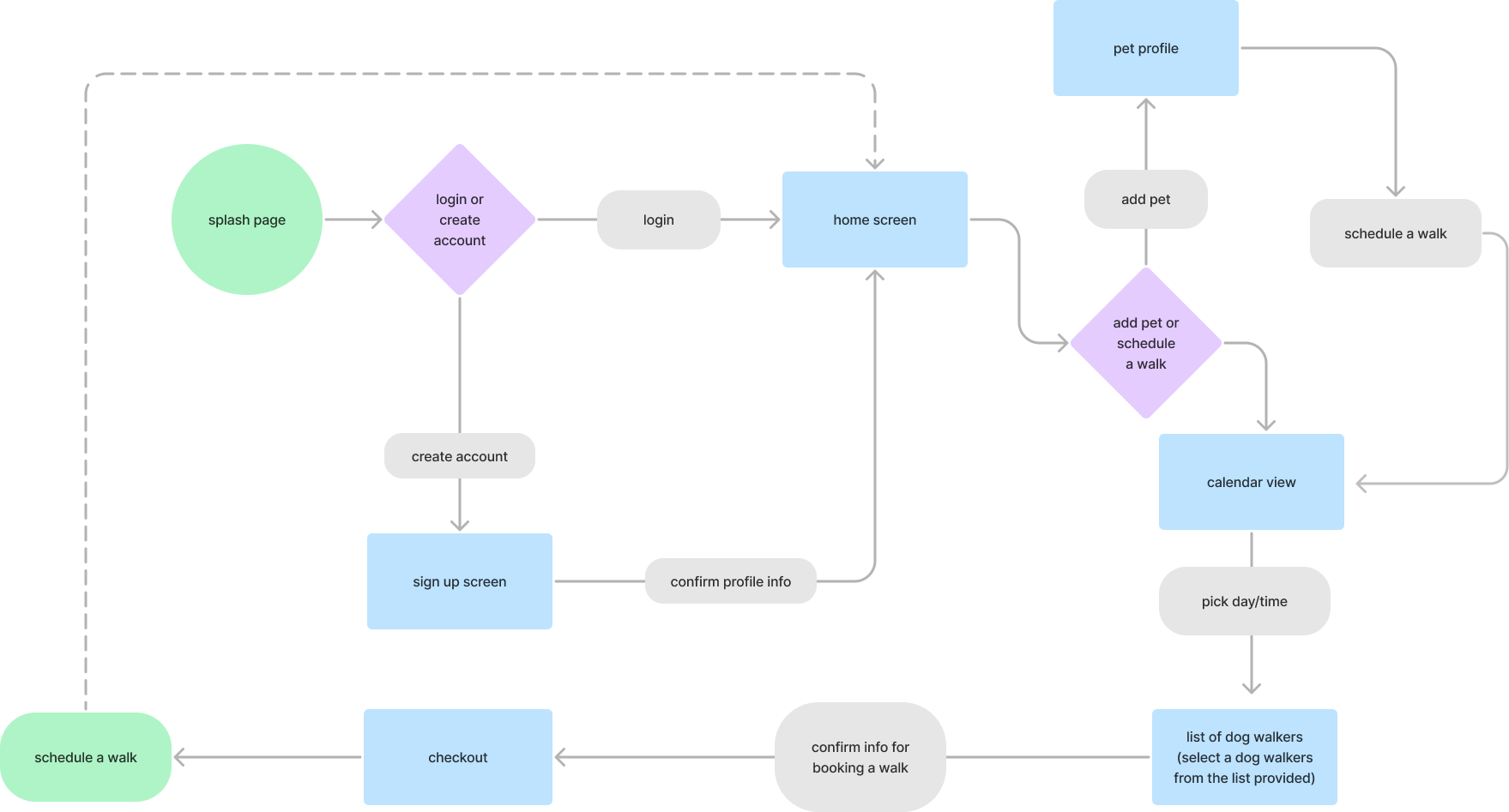 Designed a start-to-end experience to help dog owners connect with dog walkers. Increased usability and validated designs through user testings.