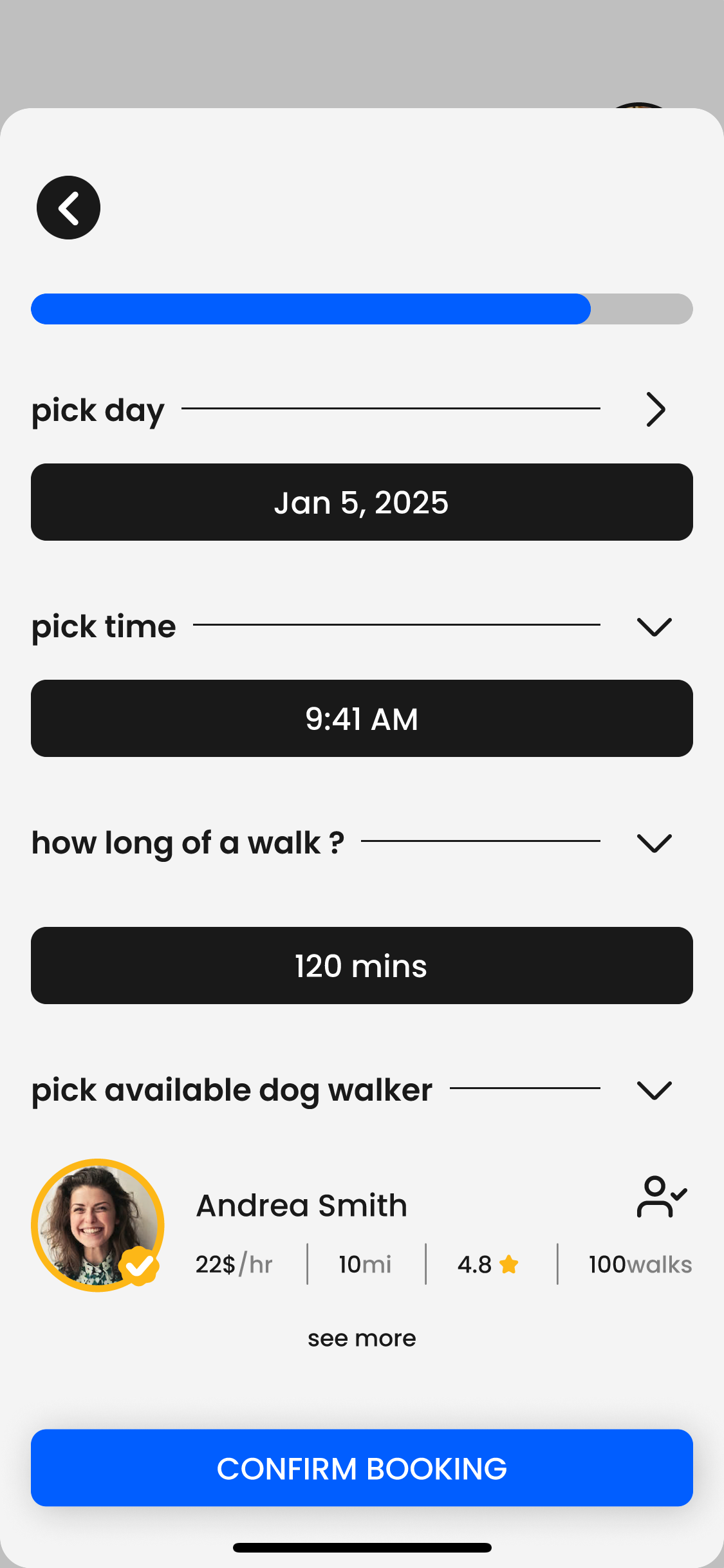 Finalized a prototype version that streamlines the app's booking form for a more positive experience for dog owners and dog walkers alike.